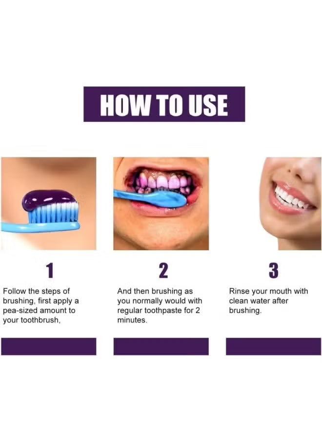 - Purple Toothpaste: Purple is the opposite of yellow on the color wheel. It penetrates deep into the enamel pores and undergoes a redox reaction with lutein, gradually breaking down tooth stains, eliminating the yellow, revealing a brighter white tone